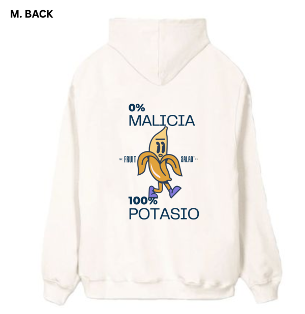 El diseño frontal minimalista “FRUIT SALAD” con plátanos animados es solo el inicio… en la parte trasera, la frase “ME RESBALO PERO CONTIGO ME CAIGO…” acompaña a tres simpáticas bananas en pleno desliz. Ideal para quienes aman lo original, lo atrevido y no tienen miedo de mostrar su sentido del humor.